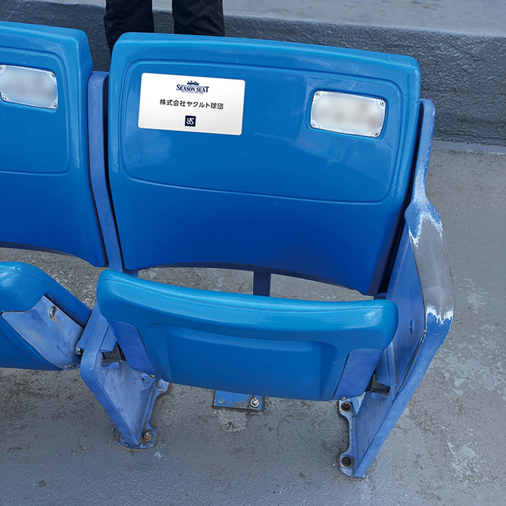 座席ネームステッカーの貼付サービス ご契約した座席の背もたれ部分に、ご契約名を印字したステッカーを貼付します。ご自身の契約席の目印として、ご契約者名のアピールとして、ぜひご利用ください。 [販売価格] 1席につき55,000円(税込) [申し込み方法] 座席のご契約時の「特典の選択」で、オプション販売を選択し、契約席数をご選択のうえお申し込みください。 [販売対象席] プレミアムTOKYOシート/TOKYOシート/TOKYO SKYシート/フロントビューシート/ビューシート/燕JOYシート/ブルペンシート ※YKK APシート/アイム・ユニバースシート/ジャックロードシート/伊藤忠ペアシート/環境ステーション シートはシート設備の都合上、オプション販売の対象外となります ※印字はご契約名に限ります。ご契約名以外の文字や社名ロゴなどはご対応できません ※適用席は原則ご契約する全席とさせていただきます。ご契約席数のなかで一部の座席にのみ貼付したい場合は、お手数ですがオーナーサイトお問い合わせフォームから別途ご相談ください ※製作期間の都合上、希望受付は2026年2月28日(土)までに契約申し込みを行った方に限らせていただきます ※ステッカーデザインや貼付位置の要望や事前確認などはお受けできません ※画像は貼付イメージとなり、ステッカーデザインや貼付位置は実際とは異なる場合がございます |
